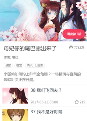 简介:《母妃你的尾巴露出来了》漫画:小狐仙雪儿生来就与其他的狐仙不同,出生便是只可爱的小狐狸,而不是像其他狐仙一样的婴儿,但是家人们对她的疼爱从来没有变化。一百年后的一天,死歌带着雪儿来到人间,贪玩的雪儿与四哥走散,遇到太子殿下慕朝歌,朝歌带着雪儿回宫,故事从这里开始。看小狐仙如何钓上金龟婿,一场精明与蠢萌的巅峰对决就此展开。